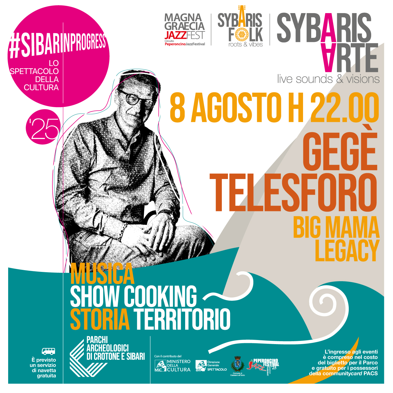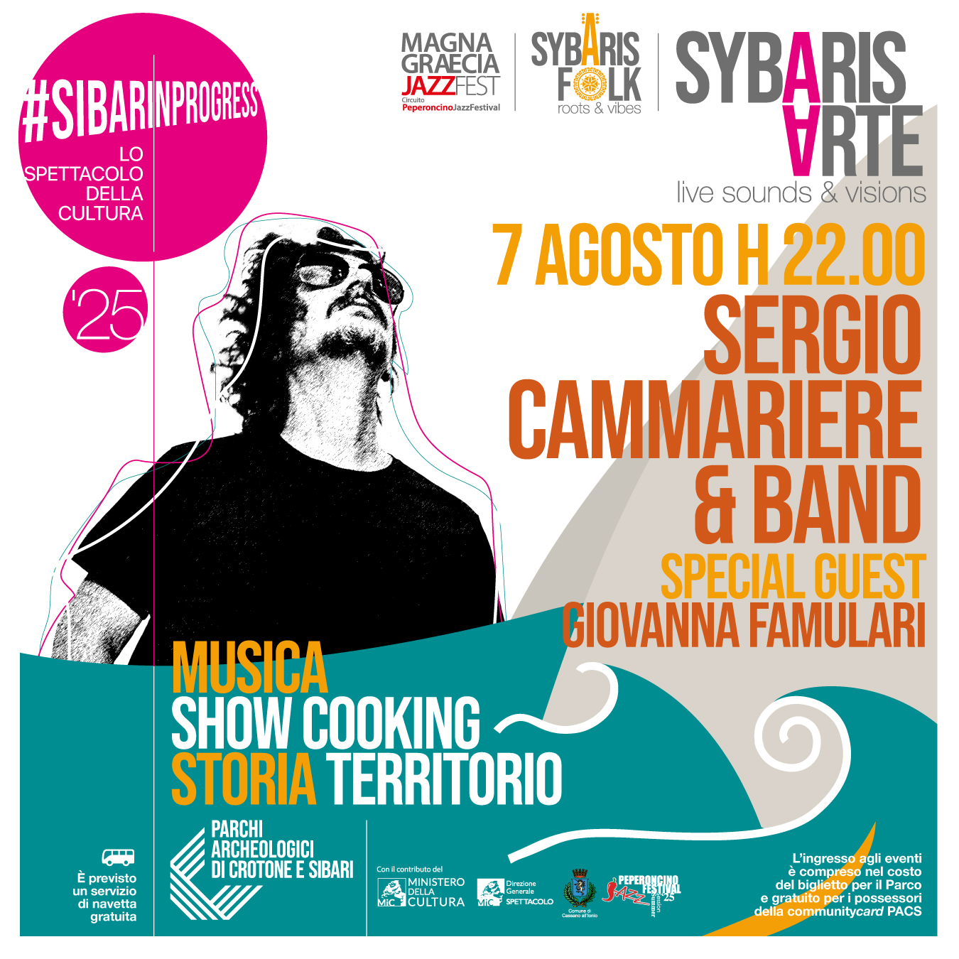 Parco Archeologico di Sibari SS106 Jonica, 87011 Cassano all'Ionio CSData: 7 agosto 2025Orario: ore 22:00Luogo: Parco Archeologico di Sibari, Sibari (CS)In collaborazione con: Sybaris Arte Una serata di grande musica con Sergio Cammariere, in uno scenario unico tra arte, storia e bellezza. Un concerto raffinato, tra jazz e canzone d'autore, nella magica atmosfera del Parco Archeologico di Sibari. Formazione artistica: Sergio Cammariere – voce […]