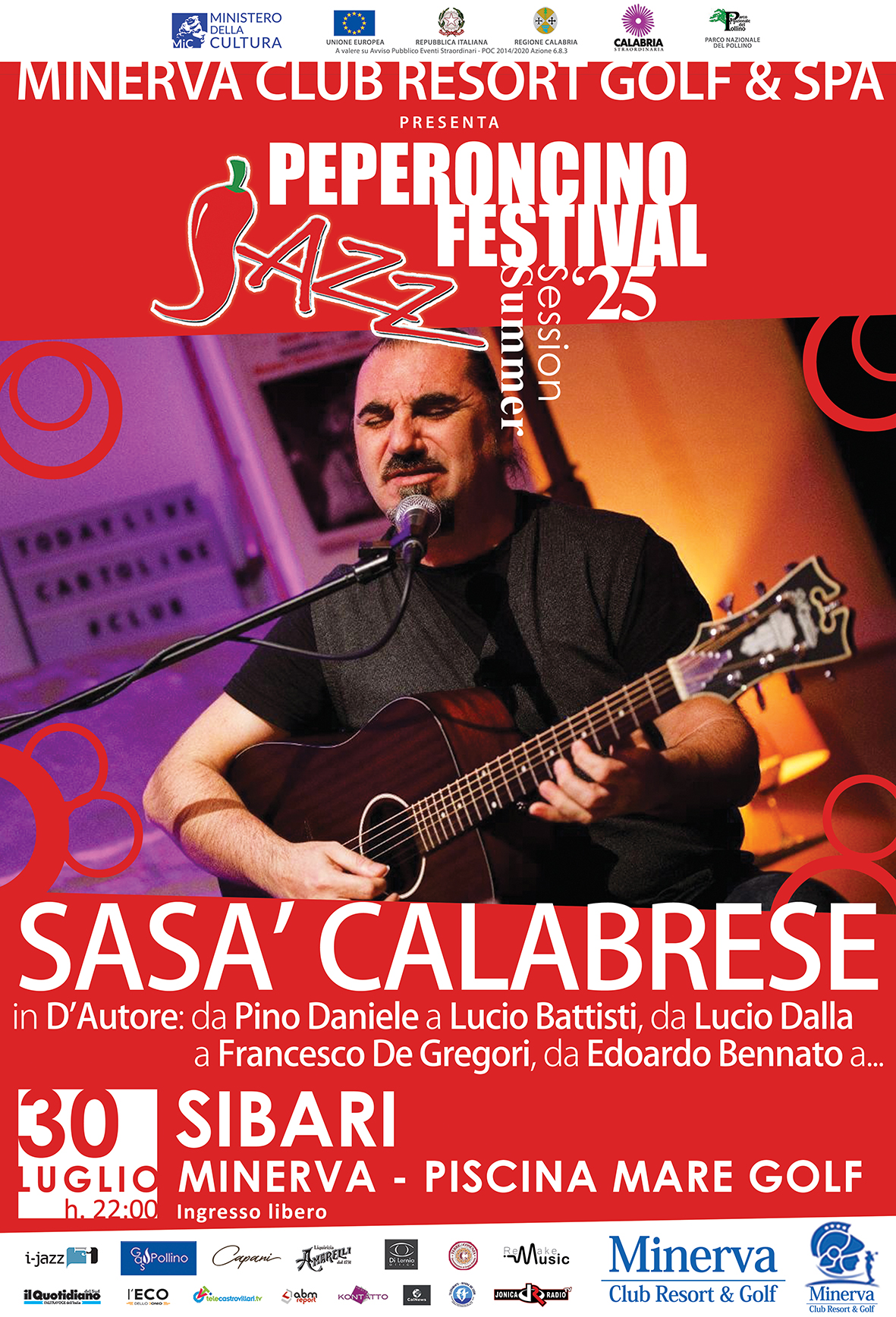 In una cornice raffinata tra luci soffuse, eleganza e profumo di mare, Sasà Calabrese porta in scena il meglio del cantautorato italiano. Un concerto intimo e coinvolgente tra voce e chitarra, in cui l’artista calabrese omaggia i grandi maestri della musica d’autore con stile, passione e intensità.
