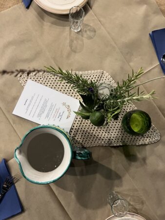 Tra le specialità: hummus con oli monovarietali, pane casereccio, acqua in brocche di vetro e tovaglie di tessuti naturali. L'atmosfera è semplice, calda, intima. L’evento è a numero chiuso, con prenotazione obbligatoria.