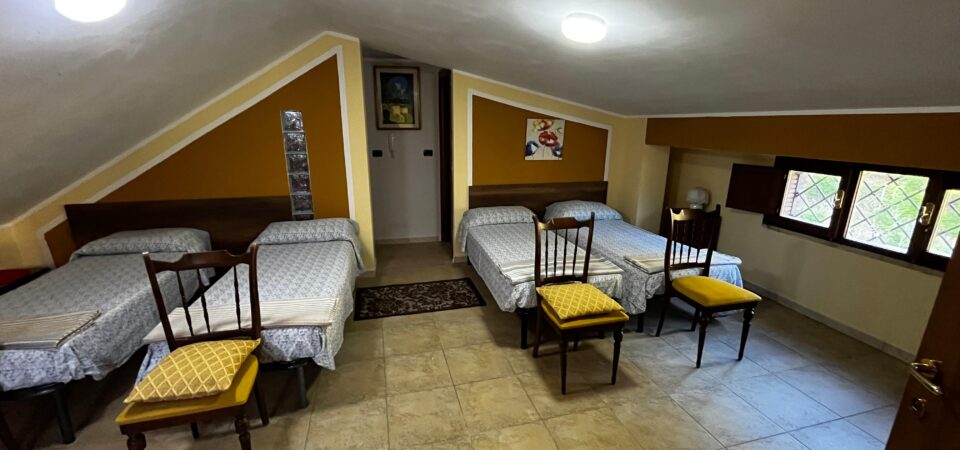 • Secondo piano: zona notte con 4 letti singoli, un matrimoniale e bagno